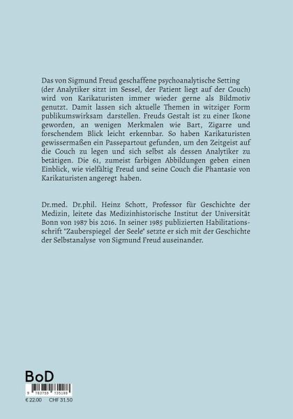 Das von Sigmund Freud geschaffene psychoanalytische Setting (der Analytiker sitzt im Sessel, der Patient liegt auf der Couch) wird von Karikaturisten immer wieder gerne als Bildmotiv genutzt. Damit lassen sich aktuelle Themen in witziger Form publikumswirksam darstellen. Freuds Gestalt ist zu einer Ikone geworden, an wenigen Merkmalen wie Bart, Zigarre und forschendem Blick leicht erkennbar. So haben Karikaturisten gewissermaßen ein Passepartout gefunden, um den Zeitgeist auf die Couch zu legen und sich selbst als dessen Analytiker zu betätigen. Die 61, zumeist farbigen Abbildungen geben einen Einblick, wie vielfältig Freud und seine Couch die Phantasie von Karikaturisten angeregt haben.