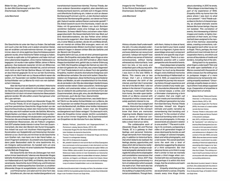 Thomas Thiede's (b. Plauen, 1967; lives and works in Fischbachau and Hamburg) oeuvre can be divided into two strands: one consists of drawings and installations, the other of joint projects with collaborators like the filmmaker, writer, philosopher, and annalist Alexander Kluge (b. Halberstadt, 1932; lives and works in Munich).