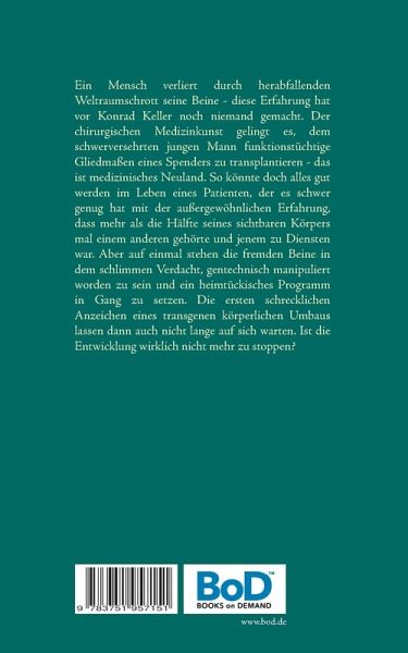 Konrad ist jung und führt eine Beziehung mit gleich zwei Frauen, hat einen guten Job und ist auch ansonsten zufrieden mit sich und der Welt, bis ihn eines Tages ein so ungewöhnlicher Unfall ereilt, dass die Wahrscheinlichkeit, mehrmals hintereinander im Lotto 6 Richtige zu haben, deutlich höher gewesen wäre. Er verliert dabei seine Beine und wäre auf ein Leben im Rollstuhl angewiesen, wenn nicht ein renommierter Professor eine ungewöhnliche Idee hätte, die das Leben des Mannes auf irritierende Weise verändern wird.
