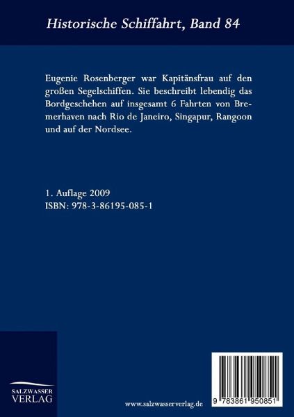 Eugenie Rosenberger war Kapitänsfrau auf den großen Segelschiffen. Sie beschreibt lebendig das Bordgeschehen auf insgesamt 6 Fahrten von Bremerhaven nach Rio de Janeiro, Singapur, Rangoon und in der Nordsee.