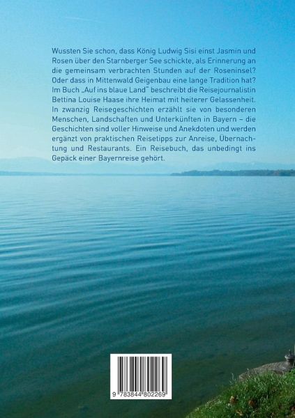 Im Buch "Auf ins blaue Land" beschreibt die Reisejournalistin Bettina Louise Haase ihre Heimat mit heiterer Gelassenheit. In zwanzig Reisegeschichten erzählt sie von besonderen Menschen, Landschaften und Unterkünften in Bayern - die Geschichten sind voller Hinweise und Anekdoten und werden ergänzt durch praktische Reisetipps zur Anreise und Übernachtung.