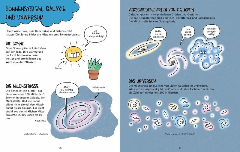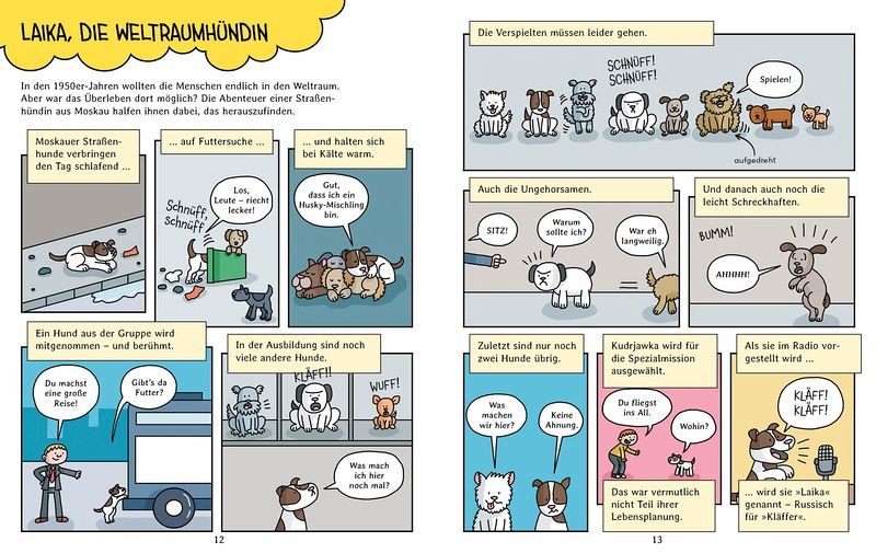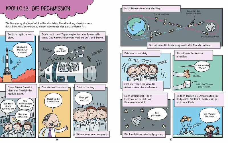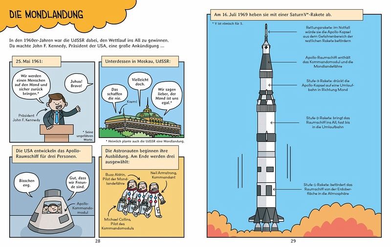 Mit einem lustigen Weltraumquiz und einem Verzeichnis mit BegriffserklärungenSachwissen in Comicform - perfekt für Wenigleserstaune über fliegende Hunde, Schildkröten im All und vieles mehr