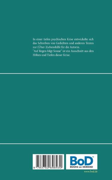 In einer tiefen psychischen Krise entwickelte sich das Schreiben von Gedichten und anderen Texten zur (Über-)Lebenshilfe für die Autorin. "Auf Regen folgt Sonne" ist ein Ausschnitt aus den Höhen und Tiefen dieser Krise.