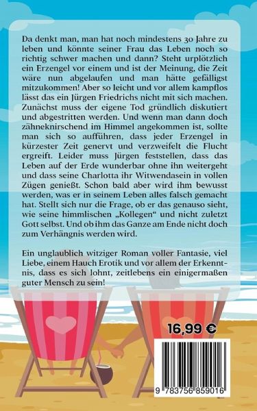 da denkt man, man hat noch mindestens 30 Jahre zu leben und könnte seiner Frau das Leben noch so richtig schwer machen und dann? Steht urplötzlich ein Erzengel vor einem und ist der Meinung, die Zeit wäre nun abgelaufen und man hätte gefälligst mitzukommen! Aber so leicht und vor allem kampflos lässt das ein Jürgen Friedrichs nicht mit sich machen. Zunächst muss der eigene Tod gründlich diskutiert und abgestritten werden. Und wenn man dann doch zähneknirschend im Himmel angekommen ist, sollte man sich so aufführen, dass jeder Erzengel in kürzester zeit genervt und verzweifelt die Flucht ergreift. Leider muss Jürgen feststellen, dass das Leben auf der Erde wunderbar ohne ihn weitergeht und dass seine Charlotta ihr Witwendasein in vollen Zügen genießt. Schon bald aber wird ihm bewusst werden, was er in seinem Leben alles falsch gemacht hat. Stellt sich nur die Frage, ob er das genauso sieht, wie seine himmlischen Kollegen und nicht zuletzt Gott selbst. Und ob ihm das Ganze am Ende nicht doch zum Verhängnis werden wird. Ein unglaublich witziger Roman voller Fantasie, viel Liebe, einem Hauch Erotik und vor allem der Erkenntnis, dass es sich lohnt, zeitlebens ein einigermaßen guter Mensch zu sein!