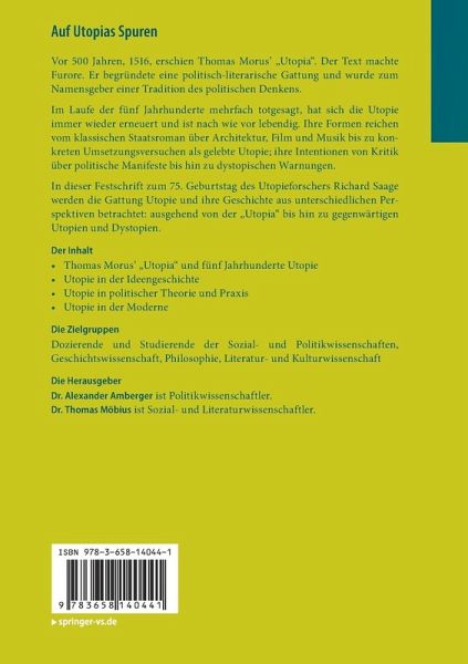 In dieser Festschrift zum 75. Geburtstag des Utopieforschers Richard Saage werden die Gattung Utopie und ihre Geschichte aus unterschiedlichen Perspektiven betrachtet: ausgehend von der "Utopia" bis hin zu gegenwärtigen Utopien und Dystopien.