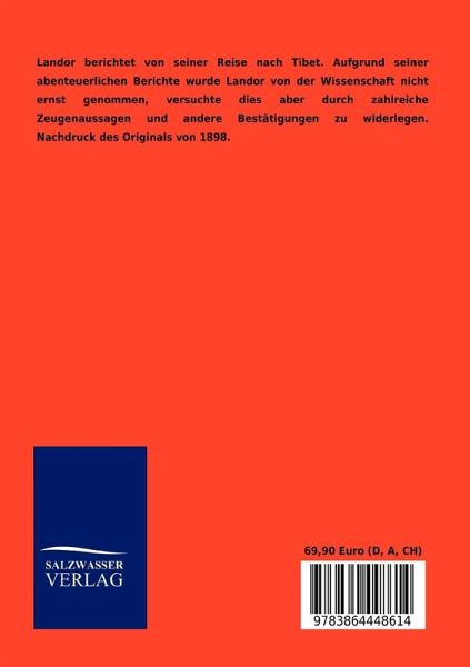 Landor berichtet von seiner Reise nach Tibet. Aufgrund seiner abenteuerlichen Berichte wurde Landor von der Wissenschaft nicht ernst genommen, versuchte dies aber durch zahlreiche Zeugenaussagen und andere Bestätigungen zu widerlegen. Nachdruck des Originals von 1898.