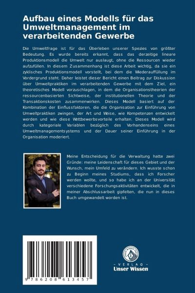 Die Umweltfrage ist für das Überleben unserer Spezies von größter Bedeutung. Es wurde bereits erkannt, dass das derzeitige lineare Produktionsmodell die Umwelt nur auslaugt, ohne die Ressourcen wieder aufzufüllen. In diesem Zusammenhang ist diese Arbeit wichtig, da sie ein zyklisches Produktionsmodell vorstellt, bei dem die Wiederauffüllung im Vordergrund steht. Daher leistet dieser Bericht einen Beitrag zur Diskussion über Umweltpraktiken im verarbeitenden Gewerbe mit dem Ziel, ein theoretisches Modell vorzuschlagen, in dem die Organisationstheorien der ressourcenbasierten Sichtweise, der institutionellen Theorie und der Transaktionskosten zusammenwirken. Dieses Modell basiert auf der Kombination der Einflussfaktoren, die die Organisation zur Einführung von Umweltpraktiken zwingen, der Art und Weise, wie Kompetenzen entwickelt werden und wie diese Wettbewerbsvorteile erhalten. Dieses Modell wird durch kategoriale Variablen bezüglich des Vorhandenseins eines Umweltmanagementsystems und der Dauer seiner Einführung in der Organisation moderiert.