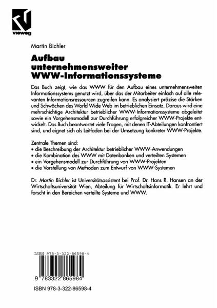 Das Buch zeigt, wie das WWW für den Aufbau eines unternehmensweiten Informationssystems genutzt wird, über das der Mitarbeiter einfach auf alle relevanten Informationsressourcen zugreifen kann. Es analysiert präzise die Stärken und Schwächen des World Wide Web im betrieblichen Einsatz. Daraus wird eine mehrschichtige Architektur betrieblicher WWW-Informationssysteme abgeleitet sowie ein Vorgehensmodell zur Durchführung erfolgreicher WWW-Projekte entwickelt. Das Buch beantwortet viele Fragen, mit denen IT-Abteilungen konfrontiert sind und eignet sich als Leitfaden bei der Umsetzung konkreter WWW-Projekte. Zentrale Themen sind: - die Beschreibung der Architektur betrieblicher WWW-Anwendungen · die Kombination des WWW mit Datenbanken und verteilten Systemen · ein Vorgehensmodell zur Durchführung von WWW-Projekten · die Vorstellung von Methoden zum Entwurf von WWW-Systemen