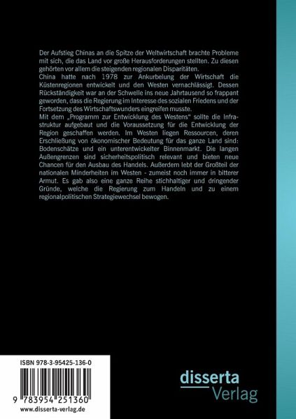Der Aufstieg Chinas an die Spitze der Weltwirtschaft brachte Probleme mit sich, die das Land vor große Herausforderungen stellten. Zu diesen gehörten vor allem die steigenden regionalen Disparitäten. China hatte nach 1978 zur Ankurbelung der Wirtschaft die Küstenregionen entwickelt und den Westen vernachlässigt. Dessen Rückständigkeit war an der Schwelle ins neue Jahrtausend so frappant geworden, dass die Regierung im Interesse des sozialen Friedens und der Fortsetzung des Wirtschaftswunders eingreifen musste. Mit dem Programm zur Entwicklung des Westens sollte die Infrastruktur aufgebaut und die Voraussetzung für die Entwicklung der Region geschaffen werden. Im Westen liegen Ressourcen, deren Erschließung von ökonomischer Bedeutung für das ganze Land sind: Bodenschätze und ein unterentwickelter Binnenmarkt. Die langen Außengrenzen sind sicherheitspolitisch relevant und bieten neue Chancen für den Ausbau des Handels. Außerdem lebt der Großteil der nationalen Minderheiten im Westen - zumeist noch immer in bitterer Armut. Es gab also eine ganze Reihe stichhaltiger und dringender Gründe, welche die Regierung zum Handeln und zu einem regionalpolitischen Strategiewechsel bewog.