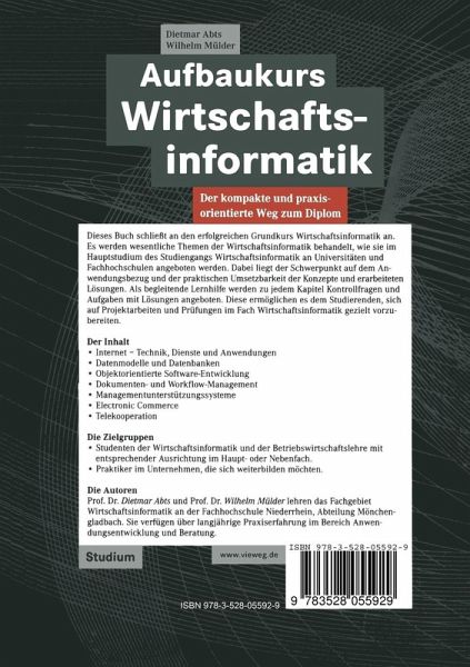 So eine Arbeit wird eigentlich nie fertig, man muss sie für fertig erklären, wenn man nach Zeit und Umständen das Möglichste getan hat. J. W. Y. Goethe, Italienische Reise, Caserta, den 16. März 1787 (Goethe bezieht sich auf die Bearbeitung seines Schauspiels "Iphigenie auf Tauris".) Aufbauend auf unserem einführenden Lehrbuch "Grundkurs Wirtschafts informatik", im gleichen Verlag erschienen, behandeln wir in diesem Buch aktuelle Themen der Wirtschaftsinformatik , wie sie z.B. im Hauptstudium des Studiengangs Wirtschaftsinformatik an Universitäten, Fachhochschulen, Berufsakademien und anderen Fort- und Weiterbildungsinstituten angeboten werden. Wir haben dabei den Schwerpunkt gelegt auf den Anwen dungsbezug und die praktische Umsetzbarkeit der von uns vorgestellten Konzepte. Dieses Lehrbuch eignet sich sowohl zum Vertiefen und Nachschlagen von Vorlesungen und Seminaren als auch zum Selbststudium. In jedem Kapitel behandeln wir die wichtigsten Grundbegriffe, zeigen die Zusammenhänge zu anderen Themenbereichen der Wirtschaftsinformatik auf und erläutern die Thematik anhand von Anwendungsbeispielen. Als zusätzliche Lernhilfe enthält jedes Kapitel Kontrollfragen und Aufgaben mit Lösungen, die es unseren Leserinnen und Lesern ermöglichen, sich auf Klausuren und Prüfungen im Fach Wirtschaftsinformatik vorzubereiten. Die Lösungshinweise befinden sich am Ende des Buches in Kapitel 9. Zur Vertiefung finden unsere Leserinnen und Leser im Literaturverzeichnis am Schluss des Buches zahlreiche weiterführende Quellen. Das Sachwortverzeichnis erleichtert das Querlesen und gezielte Nachschlagen.
