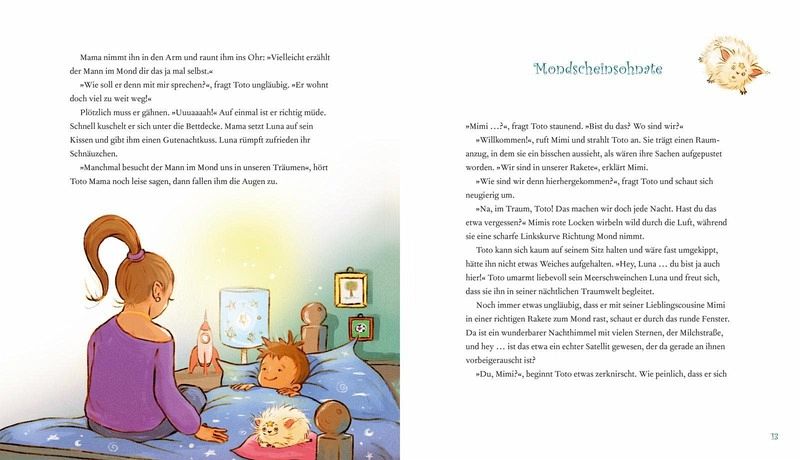 Inhalt: Toto und seine Cousine Mimi erleben in diesem zweiten Band neue Abenteuer auf dem Mond. Gemeinsam mit dem Mann im Mond, seiner Partnerin Belatrix, dem singenden Glühwürmchen Glow und dem treuen Mondschwein Luna entdecken sie faszinierende Dinge über