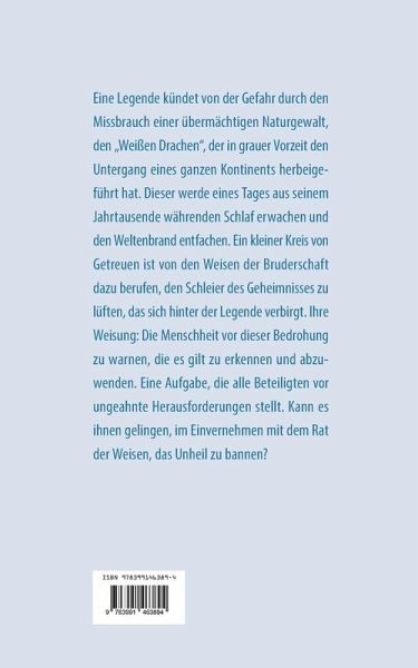 Eine Legende kündet von der Gefahr durch den Missbrauch einer übermächtigen Naturgewalt, den "Weißen Drachen", der in grauer Vorzeit den Untergang eines ganzen Kontinents herbeigeführt hat. Dieser werde eines Tages aus seinem Jahrtausende währenden Schlaf erwachen und den Weltenbrand entfachen. Ein kleiner Kreis von Getreuen ist von den Weisen der Bruderschaft dazu berufen, den Schleier des Geheimnisses zu lüften, das sich hinter der Legende verbirgt. Ihre Weisung: Die Menschheit vor dieser Bedrohung zu warnen, die es gilt zu erkennen und abzuwenden. Eine Aufgabe, die alle Beteiligten vor…mehr