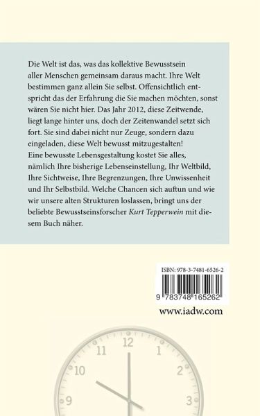 Die Welt ist das, was das kollektive Bewusstsein aller Menschen gemeinsam daraus macht. Ihre Welt bestimmen ganz allein Sie selbst. Offensichtlich entspricht das der Erfahrung die Sie machen möchten, sonst wären Sie nicht hier. Das Jahr 2012, diese Zeitwende, liegt lange hinter uns, doch der Zeitenwandel setzt sich fort. Sie sind dabei nicht nur Zeuge, sondern dazu eingeladen, diese Welt bewusst mitzugestalten! Eine bewusste Lebensgestaltung kostet Sie alles, nämlich Ihre bisherige Lebenseinstellung, Ihr Weltbild, Ihre Sichtweise, Ihre Begrenzungen, Ihre Unwissenheit und Ihr Selbstbild. Welche Chancen sich auftun und wie wir unsere alten Strukturen loslassen, bringt uns der beliebte Bewusstseinsforscher Kurt Tepperwein mit diesem Buch näher.