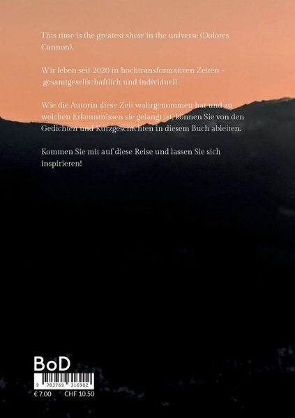This time is the greatest show in the universe (Dolores Cannon). Wir leben seit 2020 in hochtransformativen Zeiten - gesamtgesellschaftlich und individuell. Wie die Autorin diese Zeit wahrgenommen hat und zu welchen Erkenntnissen sie gelangt ist, können Sie von den Gedichten und Kurzgeschichten in diesem Buch ableiten. Kommen Sie mit auf diese Reise und lassen Sie sich inspirieren!