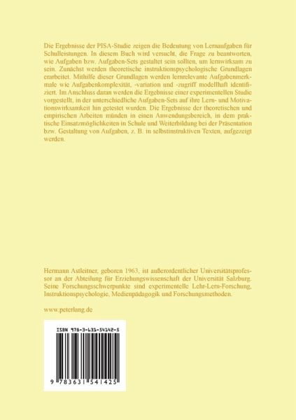 Die Ergebnisse der PISA-Studie zeigen die Bedeutung von Lernaufgaben für Schulleistungen. In diesem Buch wird versucht, die Frage zu beantworten, wie Aufgaben bzw. Aufgaben-Sets gestaltet sein sollten, um lernwirksam zu sein. Zunächst werden theoretische instruktionspsychologische Grundlagen erarbeitet. Mithilfe dieser Grundlagen werden lernrelevante Aufgabenmerkmale wie Aufgabenkomplexität, -variation und -zugriff modellhaft identifiziert. Im Anschluss daran werden die Ergebnisse einer experimentellen Studie vorgestellt, in der unterschiedliche Aufgaben-Sets auf ihre Lern- und Motivationswirksamkeit hin getestet wurden. Die Ergebnisse der theoretischen und empirischen Arbeiten münden in einen Anwendungsbereich, in dem praktische Einsatzmöglichkeiten in Schule und Weiterbildung bei der Präsentation bzw. Gestaltung von Aufgaben, z. B. in selbstinstruktiven Texten, aufgezeigt werden.