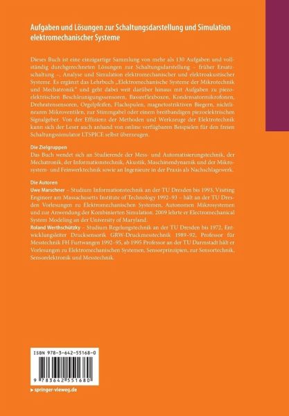 Dieses Buch ist eine einzigartige Sammlung von mehr als 130 Aufgaben und vollständig durchgerechneten Lösungen zur Schaltungsdarstellung - früher Ersatzschaltung -, Analyse und Simulation elektromechanischer und elektroakustischer Systeme. Es ergänzt das Lehrbuch "Elektromechanische Systeme der Mikrotechnik und Mechatronik" und geht dabei weit darüber hinaus mit Aufgaben zu piezoelektrischen Beschleunigungssensoren, Bassreflexboxen, Kondensatormikrofonen, Drehratensensoren, Orgelpfeifen, Flachspulen, magnetostriktiven Biegern, nichtlinearen Mikroventilen oder einem breitbandigen piezoelektrischen Signalgeber. Von der Effizienz der Methoden und Werkzeuge der Elektrotechnik kann sich der Leser auch anhand von online verfügbaren Beispielen für den freien Schaltungssimulator LTSPICE selbst überzeugen.