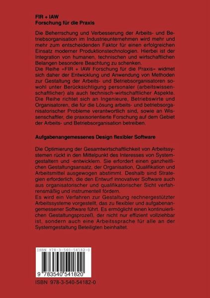 Abkürzungsverzeichnis.- 1 Einleitung.- 2 Die Bedeutung des Softwareentwurfs für die Arbeitsgestaltung.- 2.1 Prinzipien der Arbeitsgestaltung.- 2.2 Softwaregestaltung und Arbeitsgestaltung.- 2.3 Grundlagen der Softwarenutzung und -erstellung.- 2.4 Konsequenzen für den Softwareentwicklungsprozeß.- 3 Aufgabenbezogene Arbeitsgestaltung.- 3.1 Gesamtbetrachtung soziotechnischer Systeme.- 3.2 Strategien der Arbeitsgestaltung.- 3.3 Formulierung von Gestaltungszielen im Kontext humaner Arbeitsgestaltung.- 3.4 Verknüpfung von Gestaltungszielen, Analysen und Gestaltungsprozeß.- 3.5 Rahmenbedingungen der Arbeitsgestaltung.- 3.6 Fazit.- 4 Einbeziehung arbeitswissenschaftlicher Konzepte in Netzwerkdarstellungen soziotechnischer Systeme.- 4.1 Diskussion des Ansatzes von Oberquelle.- 4.2 Lösungsansätze.- 4.3 Fazit.- 5 Arbeitswissenschaftlich begründeter Software-Entwurf.- 5.1 Analyse-und Entwurfsmethoden.- 5.2 Verfahrensentwicklung.- 5.3 Vorgehensweise bei einem arbeitswissenschaftlich begründeten konzeptuellen Entwurf.- 5.4 Software-Entwicklungswerkzeug.- 6 Empirische Untersuchung.- 6.1 Voruntersuchungen.- 6.2 Methode.- 6.3 Diskussion.- 6.4 Zusammenfassung und Gesamtfolgerung.- 7 Zusammenfassung.