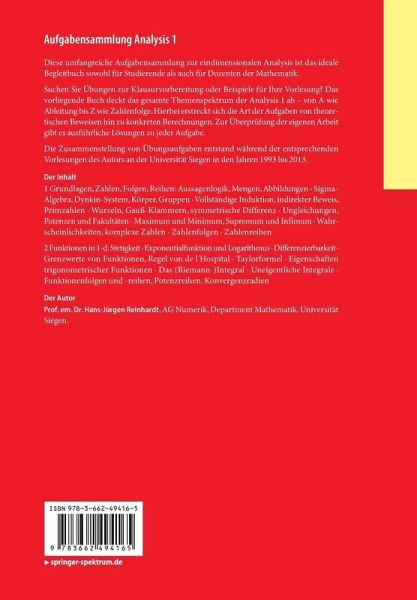 Das vorliegende Buch deckt hierbei das volle Alphabet der Analysis I ab - von A wie Ableitung bis Z wie Zahlenfolge - und bereitet das Material sowohl theoretisch als auch anhand konkreter Beispiele auf.