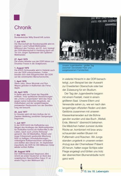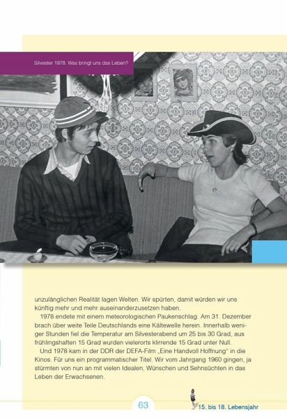 Aufgeregt und erwartungsvoll, so blickten wir damals in die Zukunft! Erinnern Sie sich mit uns an die ersten 18 Lebensjahre an Ihre Kindheit und Jugend! Jahrgang 1960 das ist die Generation, die ihren Alltag in der DDR lebte und mit einem Auge in den Westen schielte. Als Winzlinge wurden wir mit Elasan gesalbt und unsere ersten Helden waren Bummi und Meister Nadelöhr. Später waren Original-Jeans aus dem Westen ein Muss für uns. Je älter wir wurden, desto stärker erlebten wir die Widersprüche in unserem Staat. Und als wir 18 Jahre alt wurden, stürmten wir mit vielen Idealen, Wünschen und Sehnsüchten in das Leben der Erwachsenen.