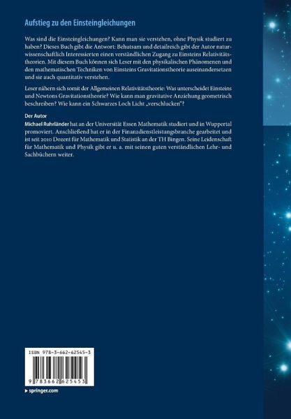 Was sind die Einsteingleichungen? Kann man sie verstehen, ohne Physik studiert zu haben? Dieses Buch gibt die Antwort: Behutsam und detailreich gibt der Autor naturwissenschaftlich Interessierten einen verständlichen Zugang zu Einsteins Relativitätstheorien. An Vorkenntnissen wird nur das vorausgesetzt, was man in der Oberstufe im Gymnasium lernt. Leser setzen sich mit den physikalischen Phänomenen und mathematischen Techniken auseinander, damit sie Einsteins Gravitationstheorie auch quantitativ verstehen können.