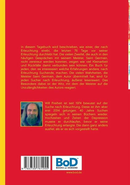 In diesem Tagebuch wird beschrieben, wie einer, der nach Erleuchtung strebt, die letzten 76 Tage vor seiner Erleuchtung durchlebt hat. Die vielen Zweifel, die auch in den häufigen Gesprächen mit seinem Meister, Saint Germain, nicht zerstreut werden konnten, zeigen wie viel Kleinarbeit und Rückfälle damit verbunden sein können. Ein Buch für jeden, den es interessiert welche Erfahrungen andere, nach Erleuchtung Suchende, machen. Dass sie mit ihren Schwächen, Inkonsequenzen und vor allem mit ihren Zweifeln nicht alleine dastehen und diese aber die Erleuchtung nicht verhindern können. Die vielen Wahrheiten, die Meister Saint Germain, dem Autor übermittelt hat, sind für jeden Sucher nach Erleuchtung, äußerst lesenswert. Das Besondere dabei ist der Witz, mit dem der Meister auf die Unzulänglichkeiten des Autors reagiert. Ein Muss, für jeden Sucher!