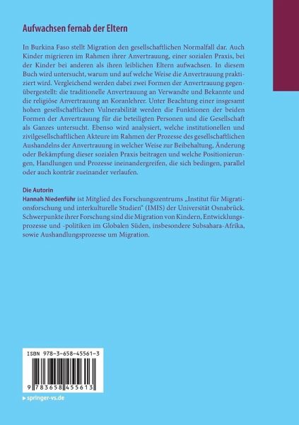 In Burkina Faso stellt Migration den gesellschaftlichen Normalfall dar. Auch Kinder migrieren im Rahmen ihrer Anvertrauung, einer sozialen Praxis, bei der Kinder bei anderen als ihren leiblichen Eltern aufwachsen. In diesem Buch wird untersucht, warum und auf welche Weise die Anvertrauung praktiziert wird. Vergleichend werden dabei zwei Formen der Anvertrauung gegenübergestellt: die traditionelle Anvertrauung an Verwandte und Bekannte und die religiöse Anvertrauung an Koranlehrer. Unter Beachtung einer insgesamt hohen gesellschaftlichen Vulnerabilität werden die Funktionen der beiden Formen der Anvertrauung für die beteiligten Personen und die Gesellschaft als Ganzes untersucht. Ebenso wird analysiert, welche institutionellen und zivilgesellschaftlichen Akteure im Rahmen der Prozesse des gesellschaftlichen Aushandelns der Anvertrauung in welcher Weise zur Beibehaltung, Änderung oder Bekämpfung dieser sozialen Praxis beitragen und welche Positionierungen, Handlungen und Prozesse ineinandergreifen, die sich bedingen, parallel oder auch konträr zueinander verlaufen.