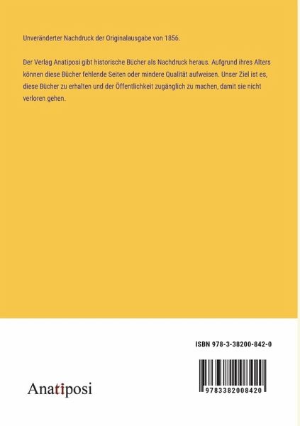 Unveränderter Nachdruck der Originalausgabe von 1856. Der Verlag Anatiposi gibt historische Bücher als Nachdruck heraus. Aufgrund ihres Alters können diese Bücher fehlende Seiten oder mindere Qualität aufweisen. Unser Ziel ist es, diese Bücher zu erhalten und der Öffentlichkeit zugänglich zu machen, damit sie nicht verloren gehen.