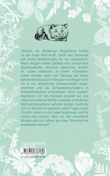 Christin, die 30-jährige obdachlose Heldin ist am Ende ihrer Kraft. Doch das Schicksal hat etwas Bedeutendes für sie vorgesehen. Nach einigen wirren Zufällen wird sie auf eine abenteuerliche Zeitreise geschickt, welche ihr Leben verändert. In einem mittelalterlichen Kloster, unter der Führung der heute berühmten Äbtissin Hildegard von Bingen wird sie in die klösterliche Gemeinschaft aufgenommen und als Schwesternschülerin in Kräuterheilkunde unterwiesen. Beim Zusammenleben mit den Nonnen erkennt sie, wie viele menschliche Werte in unserer zivilisierten Welt weitestgehend verloren gingen...
