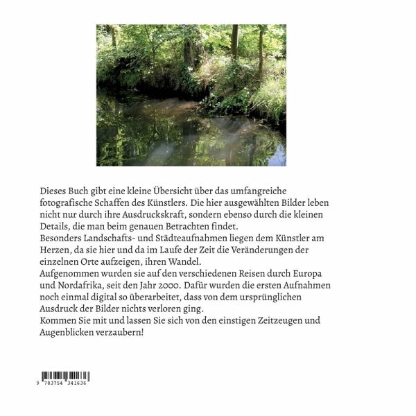 Dieses Buch gibt eine kleine Übersicht über das umfangreiche fotografische Schaffen des Künstlers. Die hier ausgewählten Bilder leben nicht nur durch ihre Ausdruckskraft, sondern ebenso durch die kleinen Details, die man beim genauen Betrachten findet.Aufgenommen wurden sie auf den verschiedenen Reisen durch Europa und Nordafrika, seit den Jahr 2000.Für diesen Bildband wurden die ersten Aufnahmen noch einmal digital so überarbeitet, dass von dem ursprünglichen Ausdrucks der Bilder nichts verloren geht.Kommen Sie mit und lassen Sie sich von den einstigen Zeitzeugen und Augenblicken verzaubern!