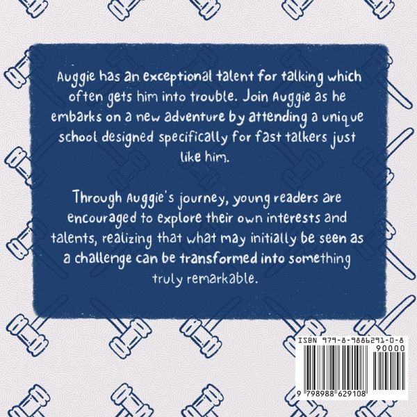 An inspiring book for fast-talking children that get into trouble for talking too much. Auggie has an exceptional talent for talking which often gets him into trouble. Join Auggie as he embarks on a new adventure by attending a unique school designed specifically for fast talkers just like him. Discover the joy of auctioneering as Auggie learns the basics of the auction chant. From number counting to tongue twisters, peek behind the curtain to see what it takes to become a professional auctioneer. Auggie the Auctioneer is an encouraging and heartwarming tale that celebrates the power of embracing one's unique talents. It emphasizes the importance of recognizing and nurturing individual strengths, even in the face of adversity. Auggie's story reminds readers that obstacles can often lead to unexpected opportunities for growth and success. The perfect gift for:Professional auctioneers Auction school graduates Aspiring auctioneers Kids that love to talk...and talk really fast!