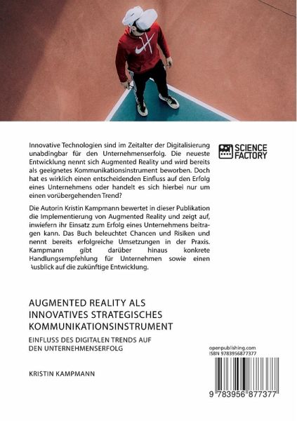 Innovative Technologien sind im Zeitalter der Digitalisierung unabdingbar für den Unternehmenserfolg. Die neueste Entwicklung nennt sich Augmented Reality und wird bereits als geeignetes Kommunikationsinstrument beworben. Doch hat es wirklich einen entscheidenden Einfluss auf den Erfolg eines Unternehmens oder handelt es sich hierbei nur um einen vorübergehenden Trend?Die Autorin Kristin Kampmann bewertet in dieser Publikation die Implementierung von Augmented Reality und zeigt auf, inwiefern ihr Einsatz zum Erfolg eines Unternehmens beitragen kann. Das Buch beleuchtet Chancen und Risiken und nennt bereits erfolgreiche Umsetzungen in der Praxis. Kampmann gibt darüber hinaus konkrete Handlungsempfehlung für Unternehmen sowie einen Ausblick auf die zukünftige Entwicklung.Aus dem Inhalt:-AR;-Virtual Reality;-Tracking;-SWOT-Analyse;-Kommunikation;-Controlling