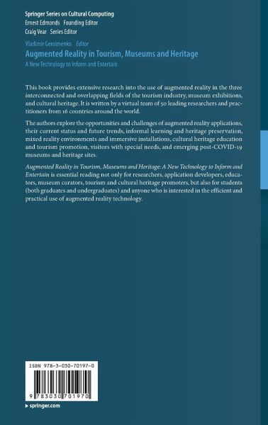 This book provides extensive research into the use of augmented reality in the three interconnected and overlapping fields of the tourism industry, museum exhibitions, and cultural heritage. It is written by a virtual team of 50 leading researchers and practitioners from 16 countries around the world.