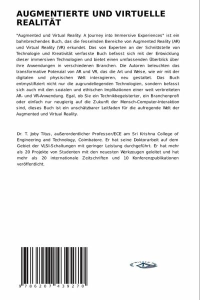 "Augmented und Virtual Reality: A Journey into Immersive Experiences" ist ein bahnbrechendes Buch, das die fesselnden Bereiche von Augmented Reality (AR) und Virtual Reality (VR) erkundet. Das von Experten an der Schnittstelle von Technologie und Kreativität verfasste Buch befasst sich mit der Entwicklung dieser immersiven Technologien und bietet einen umfassenden Überblick über ihre Anwendungen in verschiedenen Branchen. Die Autoren beleuchten das transformative Potenzial von AR und VR, das die Art und Weise, wie wir mit der digitalen und physischen Welt interagieren, neu gestaltet. Das Buch entmystifiziert nicht nur die zugrundeliegenden Technologien, sondern befasst sich auch mit den sozialen und ethischen Implikationen einer weit verbreiteten AR- und VR-Anwendung. Egal, ob Sie ein Technikbegeisterter, ein Branchenprofi oder einfach nur neugierig auf die Zukunft der Mensch-Computer-Interaktion sind, dieses Buch ist ein unschätzbarer Leitfaden für die aufregende Welt der Augmented und Virtual Reality.