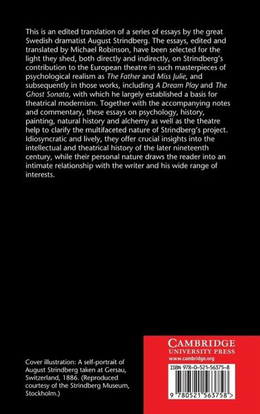 This is a fully edited translation of a series of essays by the great Swedish dramatist August Strindberg. The essays, edited and translated by Michael Robinson, have been selected for the light they shed, both directly and indirectly, on Strindberg's contribution to the European theatre, firstly in such masterpieces of psychological realism as The Father and Miss Julie, and subsequently in those works, including A Dream Play and The Ghost Sonata, with which he largely established a basis for theatrical modernism. Together with the accompanying notes and commentary, these essays on psychology, history, painting, natural history and alchemy as well as the theatre, help to clarify the multifaceted nature of Strindberg's project. Idiosyncratic and lively, they offer crucial insights into the intellectual history of the late nineteenth century, while their personal nature draws the reader into an intimate relationship with the writer and his wide range of interests.