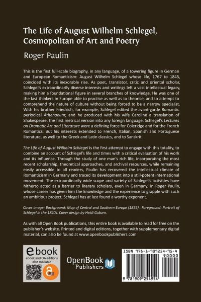 This is the first full-scale biography, in any language, of a towering figure in German and European Romanticism: August Wilhelm Schlegel whose life, 1767 to 1845, coincided with its inexorable rise. As poet, translator, critic and oriental scholar, Schlegel's extraordinarily diverse interests and writings left a vast intellectual legacy, making him a foundational figure in several branches of knowledge. He was one of the last thinkers in Europe able to practise as well as to theorise, and to attempt to comprehend the nature of culture without being forced to be a narrow specialist. With his brother Friedrich, for example, Schlegel edited the avant-garde Romantic periodical Athenaeum; and he produced with his wife Caroline a translation of Shakespeare, the first metrical version into any foreign language. Schlegel's Lectures on Dramatic Art and Literature were a defining force for Coleridge and for the French Romantics. But his interests extended to French, Italian, Spanish and Portuguese literature, as well to the Greek and Latin classics, and to Sanskrit. August Wilhelm Schlegel is the first attempt to engage with this totality, to combine an account of Schlegel's life and times with a critical evaluation of his work and its influence. Through the study of one man's rich life, incorporating the most recent scholarship, theoretical approaches, and archival resources, while remaining easily accessible to all readers, Paulin has recovered the intellectual climate of Romanticism in Germany and traced its development into a still-potent international movement. The extraordinarily wide scope and variety of Schlegel's activities have hitherto acted as a barrier to literary scholars, even in Germany. In Roger Paulin, whose career has given him the knowledge and the experience to grapple with such an ambitious project, Schlegel has at last found a worthy exponent.