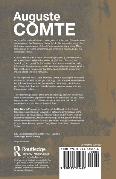 Auguste Comte is widely acknowledged as the founder of the science of sociology and the 'Religion of Humanity'. In this fascinating study, the first major reassessment of Comte's sociology for many years, Mike Gane draws on recent scholarship and presents a new reading of this remarkable figure. Comte's contributions to the history and philosophy of science have decisively influenced positive methodologies. He coined the term 'sociology' and gave it its first content, and he is renowned for having introduced the sociology of gender and emotion into sociology. What is less well known however, is that Comte contributed to ethics, and indeed coined the word 'altruism'. In this important work Gane examines Comte's sociological vision and shows that, because he thought sociology could and should be reflexive, encyclopaedic and utopian, he considered topics such as fetishism, polytheism, fate, love, and the relations between sociology, science, theology and culture. This fascinating account of the birth of sociology is an unprecedented introductory text on Comte. Gane's work is an essential read for all sociologists and students of the discipline.