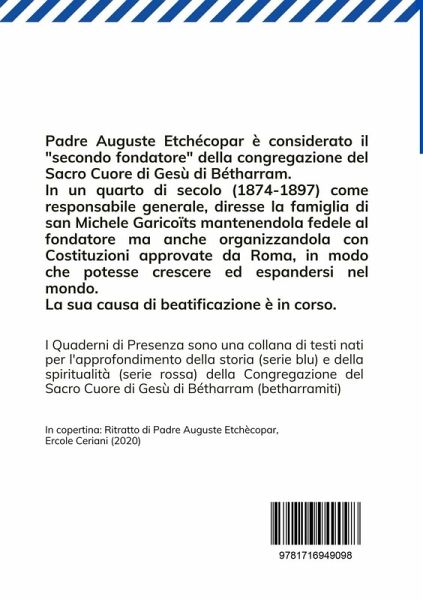 Padre Auguste Etchécopar è considerato il "secondo fondatore" della congregazione del Sacro Cuore di Gesù di Bétharram. In un quarto di secolo (1874-1897) come responsabile generale, diresse la famiglia di san Michele Garicoïts mantenendola fedele al fondatore ma anche organizzandola con Costituzioni approvate da Roma, in modo che potesse crescere ed espandersi nel mondo. La sua causa di beatificazione è in corso.