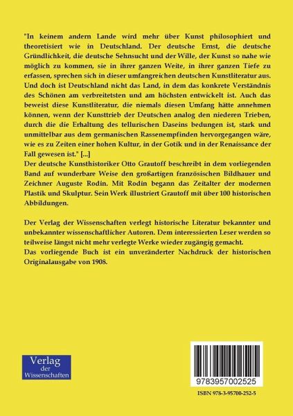 Der deutsche Kunsthistoriker Otto Grautoff beschreibt in dem vorliegenden Band auf wunderbare Weise den großartigen französischen Bildhauer und Zeichner Auguste Rodin. Mit Rodin begann das Zeitalter der modernen Plastik und Skulptur. Sein Werk illustriert Grautoff mit über 100 historischen Abbildungen.