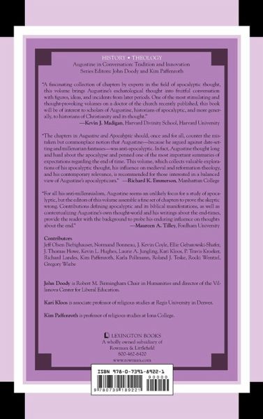 Augustine and Apocalyptic examines Augustine’s thoughts on the apocalypse and his influence on the understanding of this topic through the Middle Ages and into modern times. Augustine’s handling of apocalyptic thought captures him at the height of his powers, exercising his substantial skills at Biblical exegesis and rhetoric, as well as his abilities to deal with the social upheaval that followed the Fall of Rome in 410.