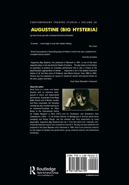 First Published in 1997. Contemporary Theatre Studies is a book series of special interest to everyone involved in theatre. It consists of monographs on influential figures, studies of movements and ideas in theatre, as well as primary material consisting of theatre-related documents, performing editions of plays in English, and English translations of plays from various vital theatre traditions worldwide. Augustine (Big Hysteria) by Anna Furse, first produced in Plymouth in1991, is one of the most important plays in the new feminist theatre of hysteria.