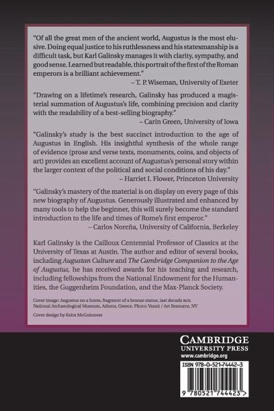 'Of all the great men of the ancient world, Augustus is the most elusive. Doing equal justice to his ruthlessness and his statesmanship is a difficult task, but Karl Galinsky manages it with clarity, sympathy, and good sense. Learned but readable, this portrait of the first of the Roman emperors is a brilliant achievement.' T. P. Wiseman, Emeritus Professor of Classics and Ancient History, University of Exeter