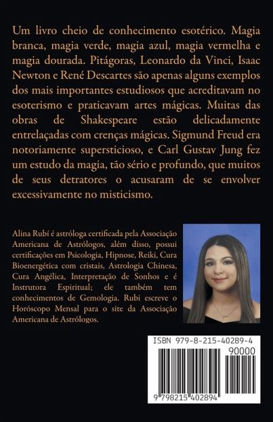 Este compêndio reúne ensinamentos clássicos e actuais do Esoterismo prático para construir uma prática sólida, bela e segura. Começa com os fundamentos: intenção, ética, ciclos e consagração, passando depois à radiestesia e ao pêndulo (simples, duplo e hebraico), com métodos de limpeza, programação e cura energética aplicáveis ao quotidiano. O percurso prossegue com o universo dos minerais: ametista, citrino, cornalina, quartzo, turmalina, selenite e muitos outros, explicados com utilizações, combinações e cuidados. Acrescentam-se as Runas de Odin com exercícios de conexão e intuição, e um mapa claro dos chacras e da cromoterapia para avaliar e harmonizar a energia pessoal. A obra integra a numerologia pitagórica (caminho natal e potencial) e a quiromancia (montes, linhas e sinais) como ferramentas de auto-conhecimento, juntamente com o ensinamento dos Sete Raios - suas cores, dias e práticas - para ordenar e elevar a vibração. Termina com estratégias de proteção e limpeza de espaços, orações, meditações e sugestões para trazer o sagrado para o quotidiano. É um guia completo para quem procura unir magia e esoterismo com juízo, beleza e prática: desde a consagração de um amuleto e a criação de grelhas de cristais até à conceção de leituras éticas para si e para os outros.