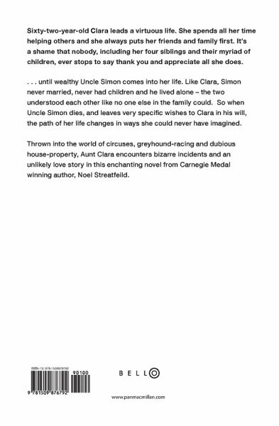 Sixty-two-year-old Clara leads a virtuous life. She spends all her time helping others and she always puts her friends and family first. It's a shame that nobody, including her four siblings and their myriad of children, ever stops to say thank you and appreciate all she does. . . . until wealthy Uncle Simon comes into her life. Like Clara, Simon never married, never had children and he lived alone - the two understood each other like no one else in the family could. So when Uncle Simon dies, and leaves very specific wishes to Clara in his will, the path of her life changes in ways she could never imagined. Thrown into the world of circuses, greyhound-racing and dubious house-property, Aunt Clara encounters bizarre incidents and an unlikely love story in this enchanting novel from Carnegie Medal winning author, Noel Streatfeild.