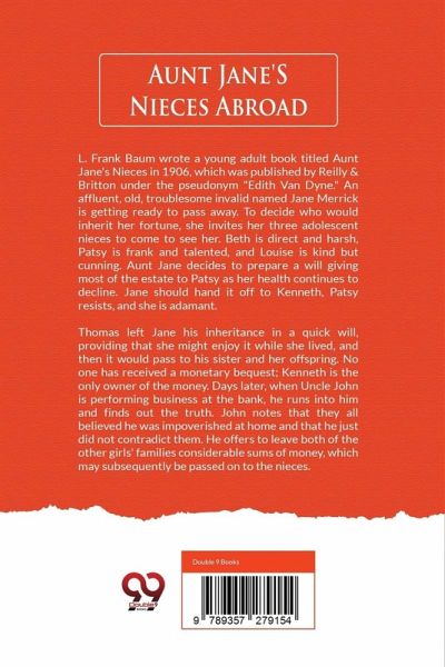 L. Frank Baum wrote a young adult book titled Aunt Jane's Nieces in 1906, which was published by Reilly & Britton under the pseudonym ""Edith Van Dyne."" An affluent, old, troublesome invalid named Jane Merrick is getting ready to pass away. To decide who would inherit her fortune, she invites her three adolescent nieces to come to see her. Beth is direct and harsh, Patsy is frank and talented, and Louise is kind but cunning. Aunt Jane decides to prepare a will giving most of the estate to Patsy as her health continues to decline. Jane should hand it off to Kenneth, Patsy resists, and she is adamant. Thomas left Jane his inheritance in a quick will, providing that she might enjoy it while she lived, and then it would pass to his sister and her offspring. No one has received a monetary bequest; Kenneth is the only owner of the money. Days later, when Uncle John is performing business at the bank, he runs into him and finds out the truth. John notes that they all believed he was impoverished at home and that he just did not contradict them. He offers to leave both of the other girls' families considerable sums of money, which may subsequently be passed on to the nieces.
