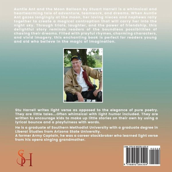 Auntie Ant and the Moon Balloon by Stuart Harrell is a whimsical and heartwarming tale of adventure, teamwork, and dreams. When Auntie Ant gazes longingly at the moon, her loving nieces and nephews rally together to create a magical contraption that will carry her into the night sky. Through trials, laughter, and the power of friendship, this delightful story reminds readers of the boundless possibilities of chasing their dreams. Filled with playful rhymes, charming characters, and vivid imagery, this enchanting book is perfect for readers young and old who believe in the magic of imagination.