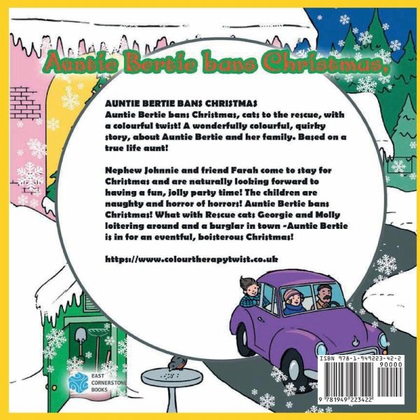 Colourful fun vibrant reading experience. AWARD WINNING AUTHOR ESTHER. Auntie Bertie bans Christmas! With her Victorian attitude both Johnnie who is lazy about cleaning and brushing his teeth and Farah who is staying for Christmas realise that with the help of rescue cats and pets that Christmas can be saved! Also ideal for learning difficulties and educational needs as the vibrant colours hold the attention span and add extra dimension to the story and reading experience. Listen-laugh-learn. Auntie Bertie loves Christmas with children staying, but has a problem with a robbery and her pets chase the robbers. A fun filled colourful family book about Christmas in the snow. Auntie Bertie has Victorian values which are great reading material.