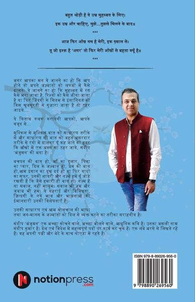Introducing a versatile poet and author Sundeep 'Anjuman' who beautifully weaves the essence of everyday life into his writings in the common Hindi-Urdu language. With a deep understanding of human emotions, he has the remarkable ability to transform those sentiments into words of simplicity and profound impact. He is a true maestro, capable of exploring the intricacies of life and transforming them into words. Sundeep 'Anjuman' is a gifted writer who captures the hearts of readers with his poetry. His words have the power to touch the core of human experiences, effortlessly bridging the gap between hearts and minds. Whether it is love, pain, joy, or longing, he delves into the tapestry of emotions, creating verses that become a mirror to the readers' own feelings. His deep connection with the common people shines through his work, as he portrays their hopes, dreams, struggles, and triumphs with empathy and authenticity. Through his writings, he gives a voice to the unspoken thoughts and emotions of those who often go unnoticed. Prepare to embark on a journey through the realms of emotions, as sundeep 'Anjuman' invites you to experience the beauty of the common Hindi -Urdu language. Get ready to be captivated by the power of his words, as he reveals the extraordinary in the ordinary, and leaves an everlasting impression on your heart and mind.