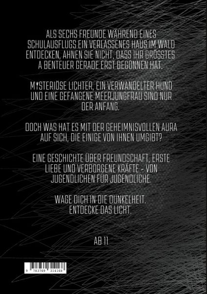 Als sechs Freunde während eines Schulausflugs ein verlassenes Haus im Wald entdecken, ahnen sie nicht, dass ihr größtes Abenteuer gerade erst begonnen hat. Mysteriöse Lichter, ein verwandelter Hund und eine gefangene Meerjungfrau sind nur der Anfang. Doch was hat es mit der geheimnisvollen Aura auf sich, die einige von ihnen umgibt? Eine Geschichte über Freundschaft, erste Liebe und verborgene Kräfte - von Jugendlichen für Jugendliche. Wage dich in die Dunkelheit. Entdecke das Licht. Altersempfehlung: ab 11 Jahren