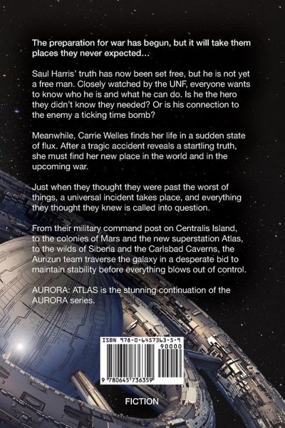 The preparation for war has begun, but it will take them places they never expected... Saul Harris' truth has now been set free, but he is not yet a free man. Closely watched by the UNF, everyone wants to know who he is and what he can do. Is he the hero they didn't know they needed? Or is his connection to the enemy a ticking time bomb? Meanwhile, Carrie Welles finds her life in a sudden state of flux. After a tragic accident reveals a startling truth, she must find her new place in the world and in the upcoming war. Just when they thought they were past the worst of things, a universal incident takes place, and everything they thought they knew is called into question. From their military command post on Centralis Island, to the colonies of Mars and the new superstation Atlas, to the wilds of Siberia and the Carlsbad Caverns, the Aurizun team traverse the galaxy in a desperate bid to maintain stability before everything blows out of control. AURORA: ATLAS is the stunning continuation and penultimate episode of the AURORA series.