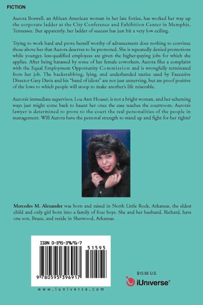 Aurora Boswell, an African American woman in her late forties, has worked her way up the corporate ladder at the City Conference and Exhibition Center in Memphis, Tennessee. But apparently, her ladder of success has just hit a very low ceiling. Trying to work hard and prove herself worthy of advancement does nothing to convince those above her that Aurora deserves to be promoted. She is repeatedly denied promotions while younger, less-qualified employees are given the higher-paying jobs for which she applies. After being harassed by some of her female coworkers, Aurora files a complaint with the Equal Employment Opportunity Commission and is wrongfully terminated from her job. The backstabbing, lying, and underhanded tactics used by Executive Director Gary Davis and his "band of idiots" are not just unnerving, but are proof positive of the lows to which people will stoop to make another's life miserable. Aurora's immediate supervisor, Lou Ann Houser, is not a bright woman, and her scheming ways just might come back to haunt her once the case reaches the courtroom. Aurora's lawyer is determined to prove to the court the real personalities of the people in management. Will Aurora have the personal strength to stand up and fight for her rights?